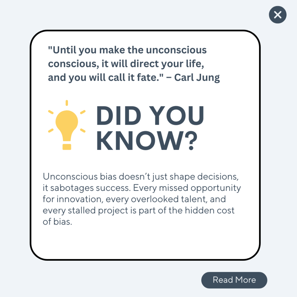 Unconscious bias influences our decisions and can undermine our success. Every missed chance for innovation, every overlooked talent, and every stalled project contributes to the hidden costs of bias. Tackling unconscious bias is not only the right thing; it is essential for business success.